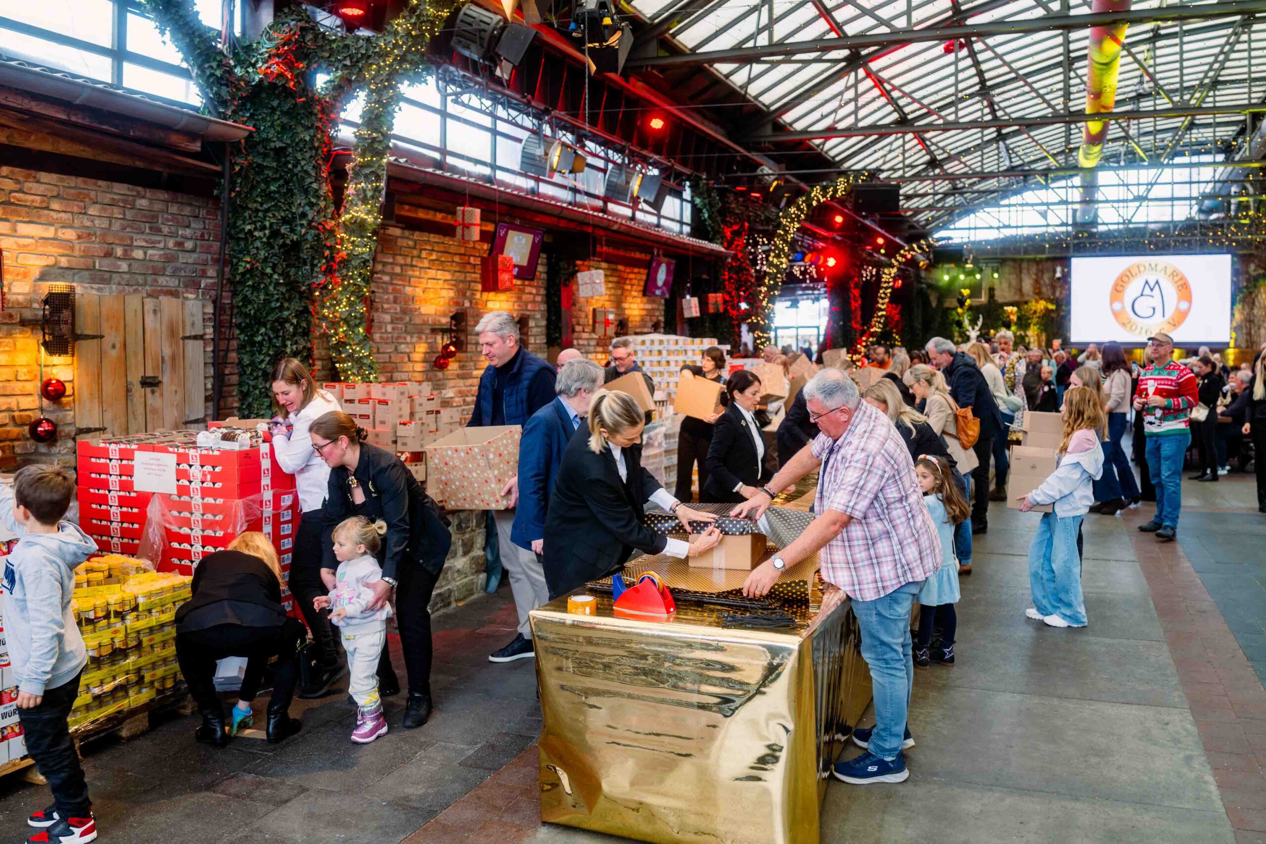 Am 1. Advents-Sonntag, 30.11.25, war es zum 5. Mal wieder soweit: Das Goldmarie Charity-Event „Die Goldtafel“ fand in den weihnachtlich geschmückten Räumlichkeiten Halle Tor2 statt. Über 17.000 Lebensmittel standen bereit, um diese zugunsten der Tafel Köln e.V. zu verpacken. Am späten Nachmittag war es dank kleiner und großer Hände geschafft – über 1.111 St. Lebensmittelpakte stehen nun den Ausgabestellen der Kölner Tafel bereit – die Erwartungen wurden einfach übertroffen!